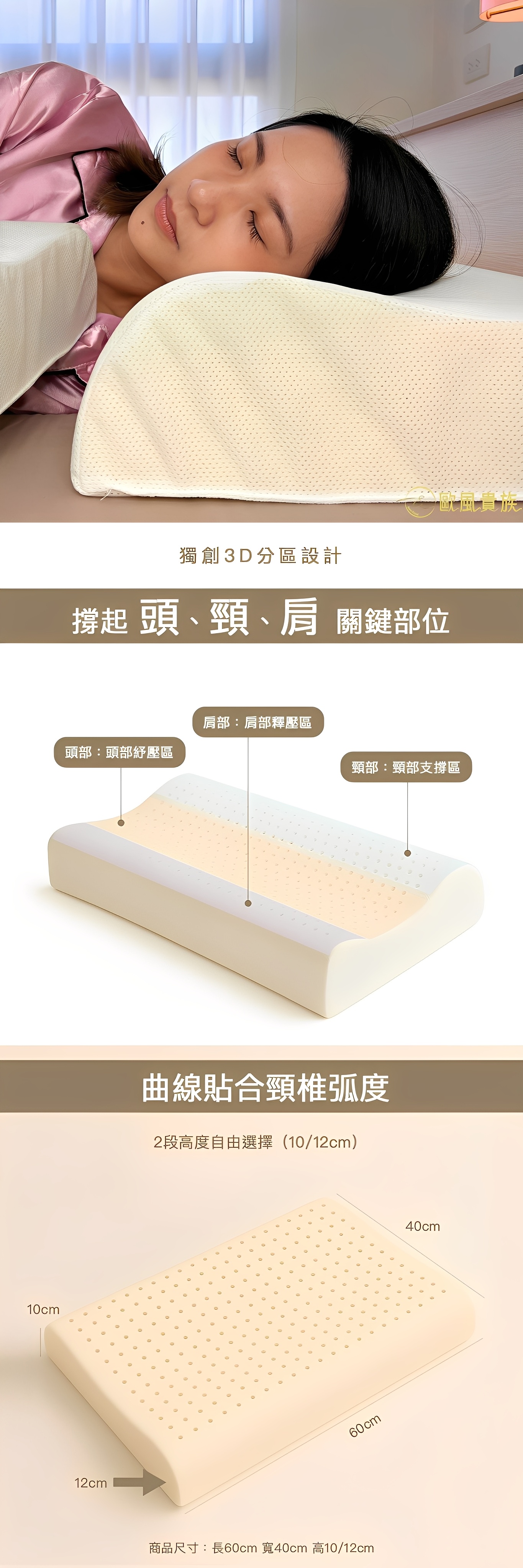 • 三區設計:頭部釋壓/頸部支撐/肩部貼合
